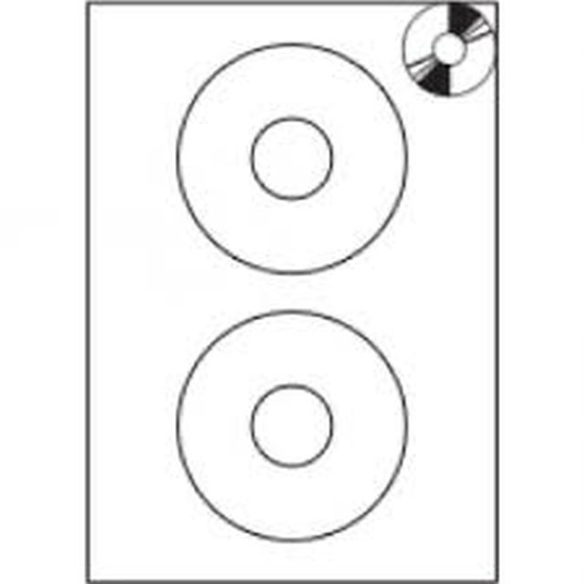 Λευκή ετικέτα cd για εκτυπώσεις laser,copy,inkjet. διαστάσεις: Ø 117 σε φύλλο Α4. χρώμα: λευκό, αδιαφανές. Φύλλα/πακέτο: 100. ετικέτες/πακέτο: 200