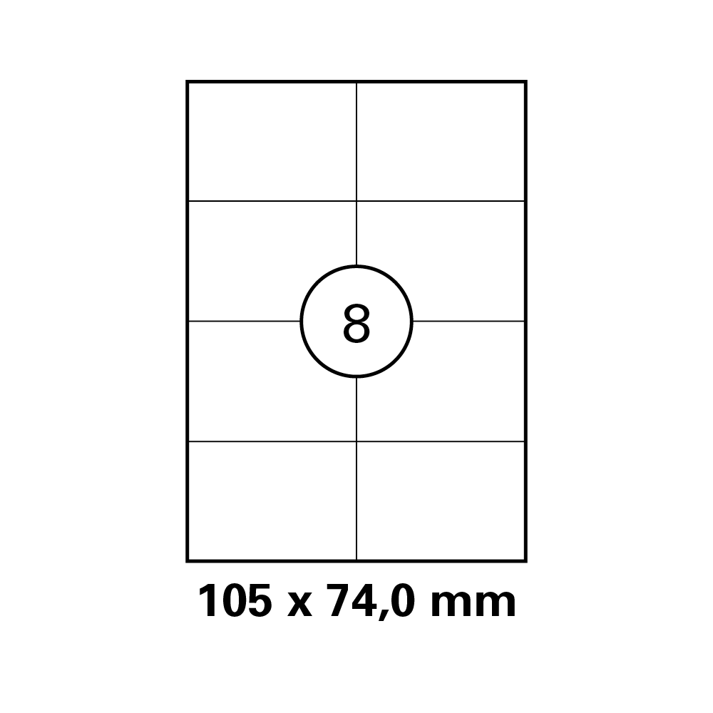 Λευκή ετικέτα για εκτυπώσεις laser,copy,inkjet, διαστάσεων 105x74mm σε φύλλο Α4. φύλλα/πακέτο: 100. ετικέτες/πακέτο: 800