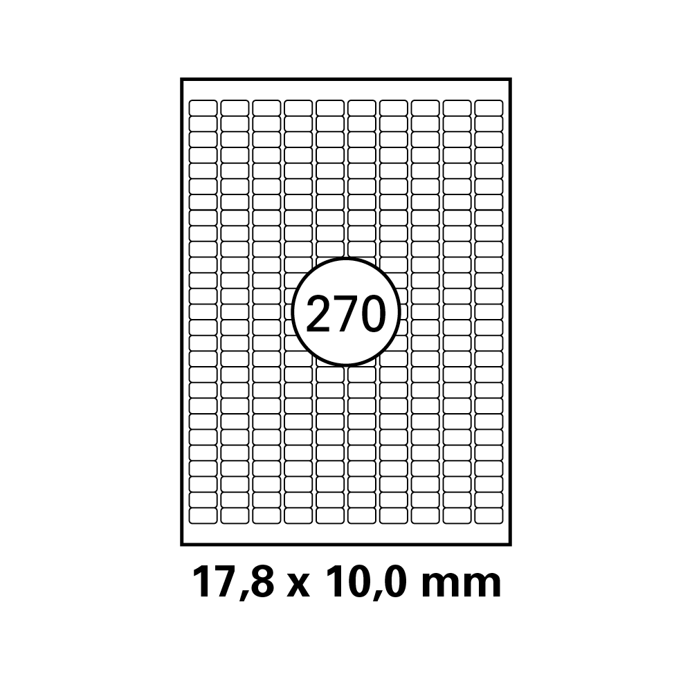 Λευκή ετικέτα διαστάσεων 17,8x10mm σε φύλλο Α4. φύλλα/πακέτο: 25 ετικέτες/πακέτο: 6750