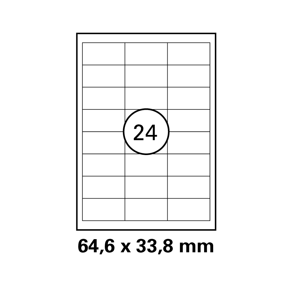 Λευκή ετικέτα για εκτυπώσεις laser,copy,inkjet, διαστάσεων 64,6x33,8mm σε φύλλο Α4. φύλλα/πακέτο: 100. ετικέτες/πακέτο: 2400