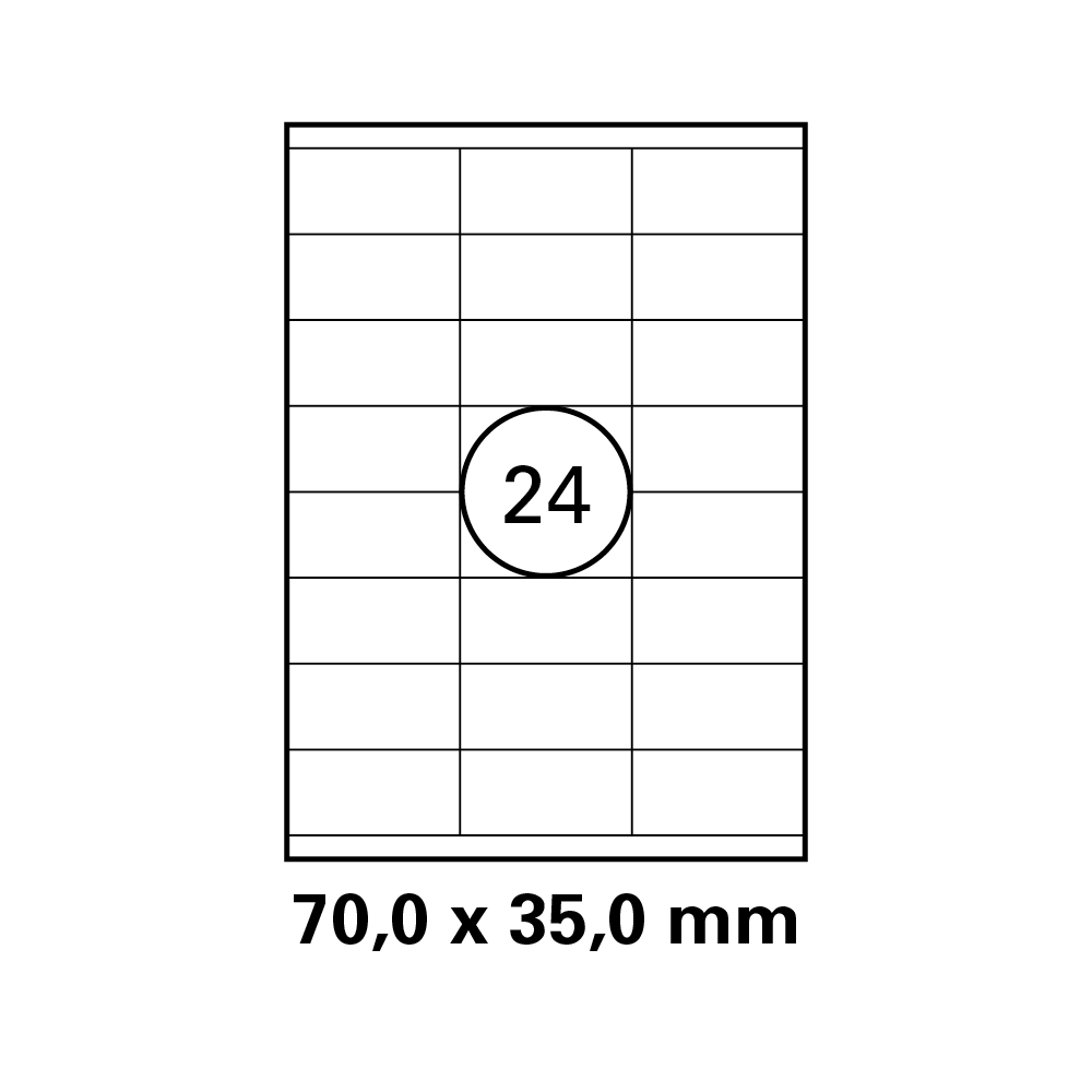 Λευκή ετικέτα για εκτυπώσεις laser,copy,inkjet, διαστάσεων 70x35mm σε φύλλο Α4. φύλλα/πακέτο: 100. ετικέτες/πακέτο: 2400