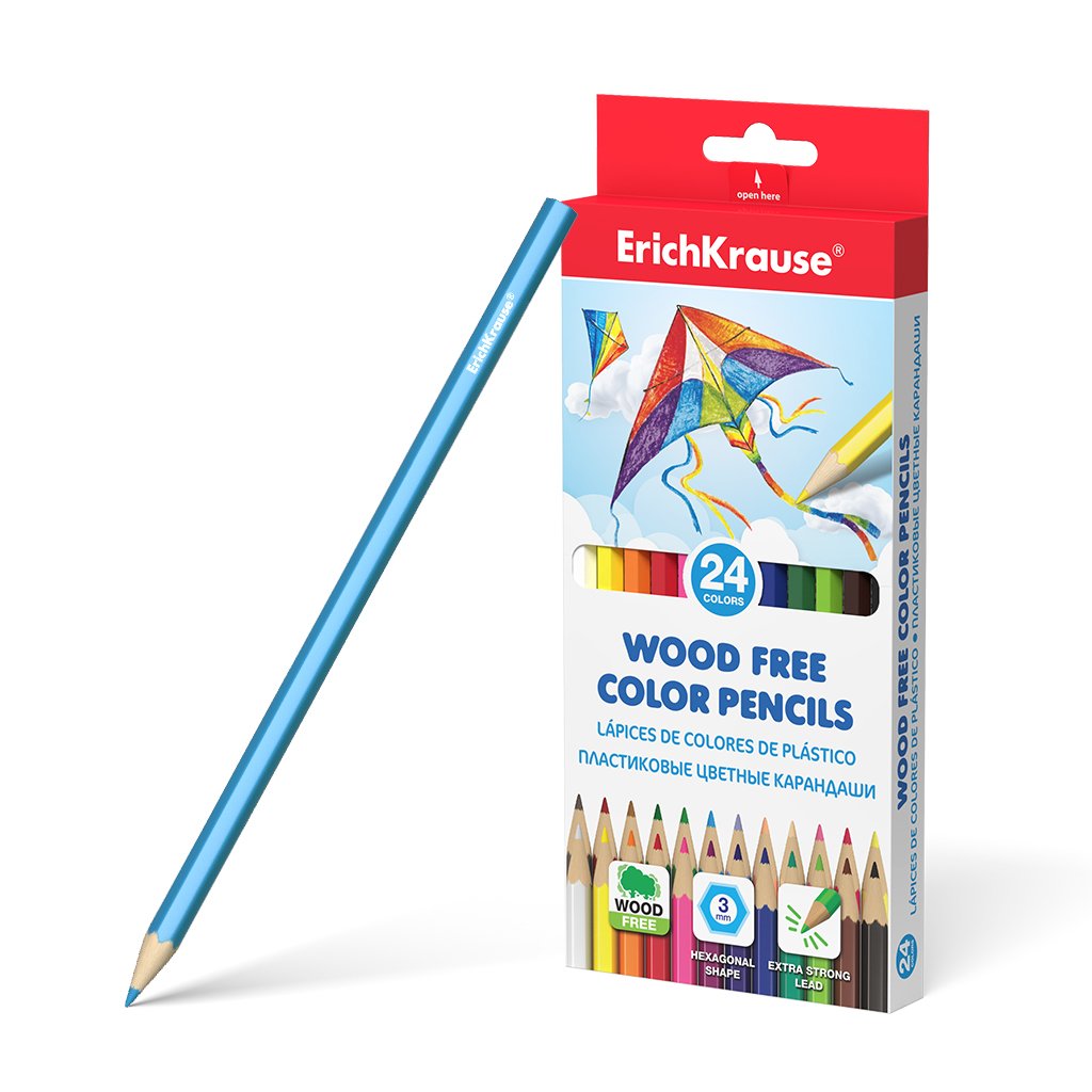Τα χρωματιστά μολύβια ErichKrause διατίθενται σε μεγάλη γκάμα φωτεινών χρωμάτων που επιτρέπουν τη δημιουργία ζωντανών, ρεαλιστικών σχεδίων. Χάρη στο εργονομικό τριγωνικό σχήμα, τα μολύβια εφαρμόζουν άνετα στο χέρι.  Το Ευρωπαϊκό πιστοποιητικό ποιότητας (CE) εγγυάται την απουσία τοξικών ουσιών στη σύνθεση. Δεν περιέχει PVC 24 χρώματα